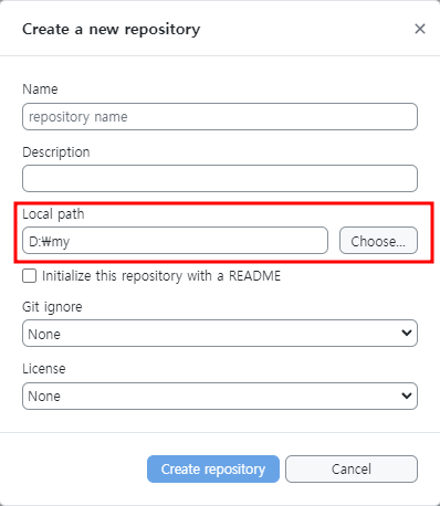 해당 칸은 디렉토리설정 (나는 my라는 디렉토리에 있는 파일들의 버전관리를 하고싶어!)