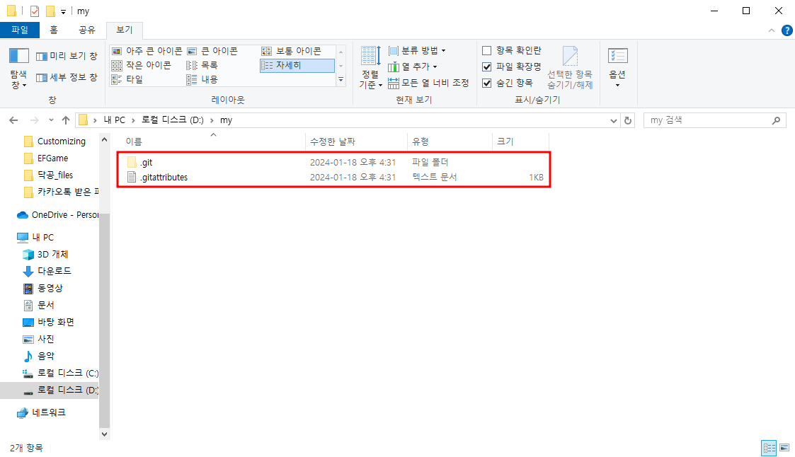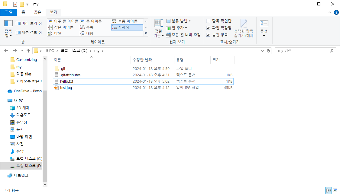 D드라이브에 my라는 디렉토리(폴더)이 생기고 디렉토리 안에 무언가 생겼죠?
