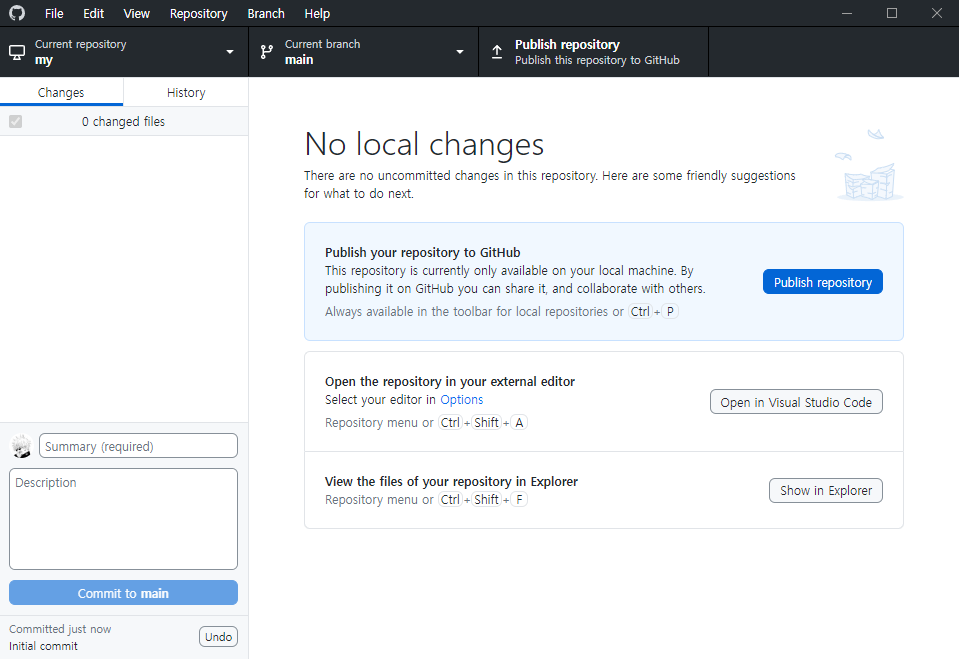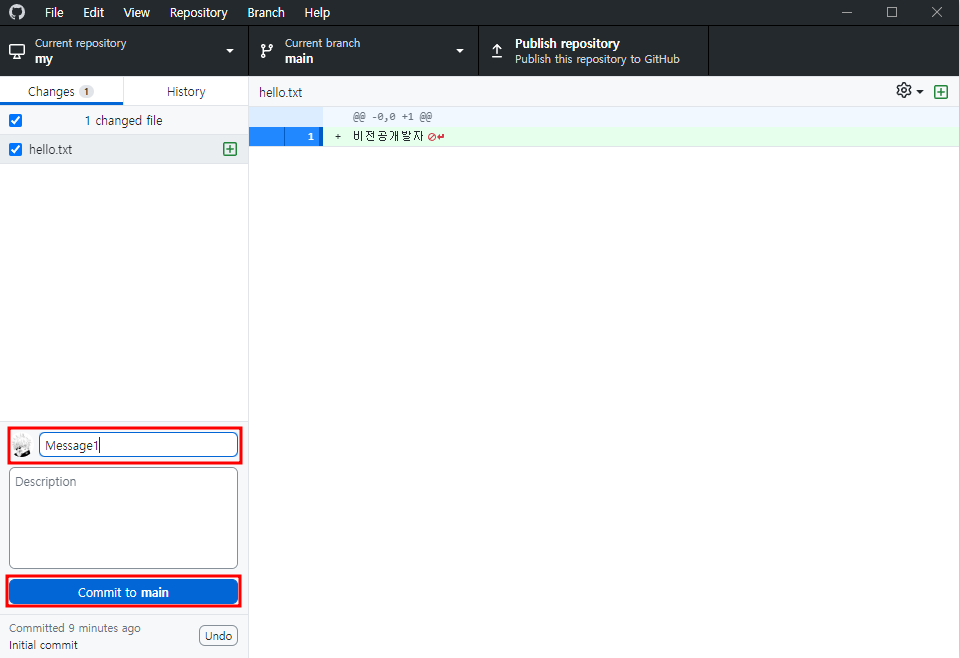 했던 작업의 내용과 커밋(생성)을 눌러줍시다.