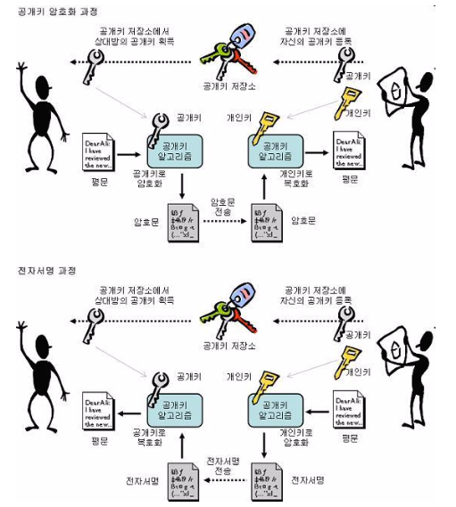 - 암호화와 복호화에 서로 다른 두 개의 키를 사용