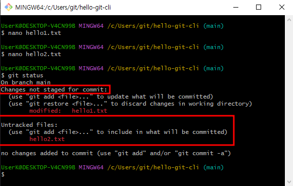 1. 두개의 파일은 Staging Area에 아직 올라가지 않았다는 공통점이 있고